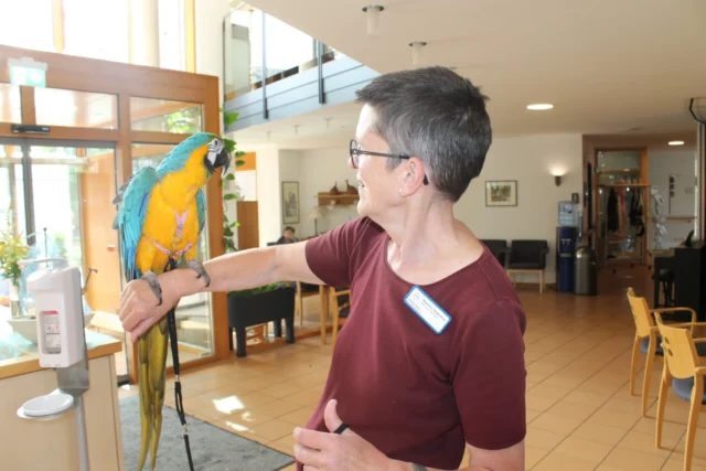 Seit vielen Jahren kommen die Landfrauen in der Erntedankzeit ins Haus, um mit ihrer Dekoration Freude zu schenken. Bewohner/-innen, Angehörige und Mitarbeitende wissen diesen Einsatz zu schätzen.